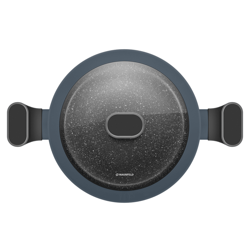 Мраморное антипригарное покрытие абсолютно инертно —это гарантирует, что в пищу не попадет никаких вредных примесей и веществ даже при воздействии очень высоких температур. Поверхность посуды не подвержена загрязнениям и не впитывает запахи.