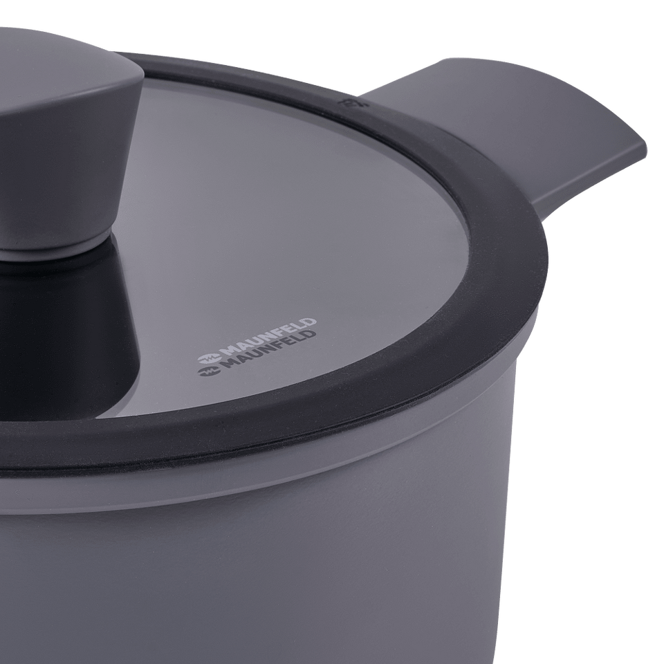 Кастрюля идет в комплектации со стеклянной жаропрочной крышкой. Бакелитовая ручка