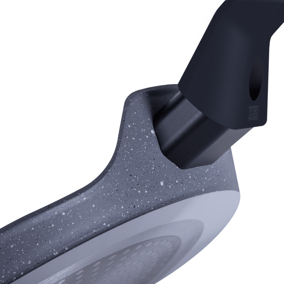 Эргономичная ручка из термостойкого бакелита с покрытием soft-touch не скользит в руке и не нагревается в процессе приготовления.