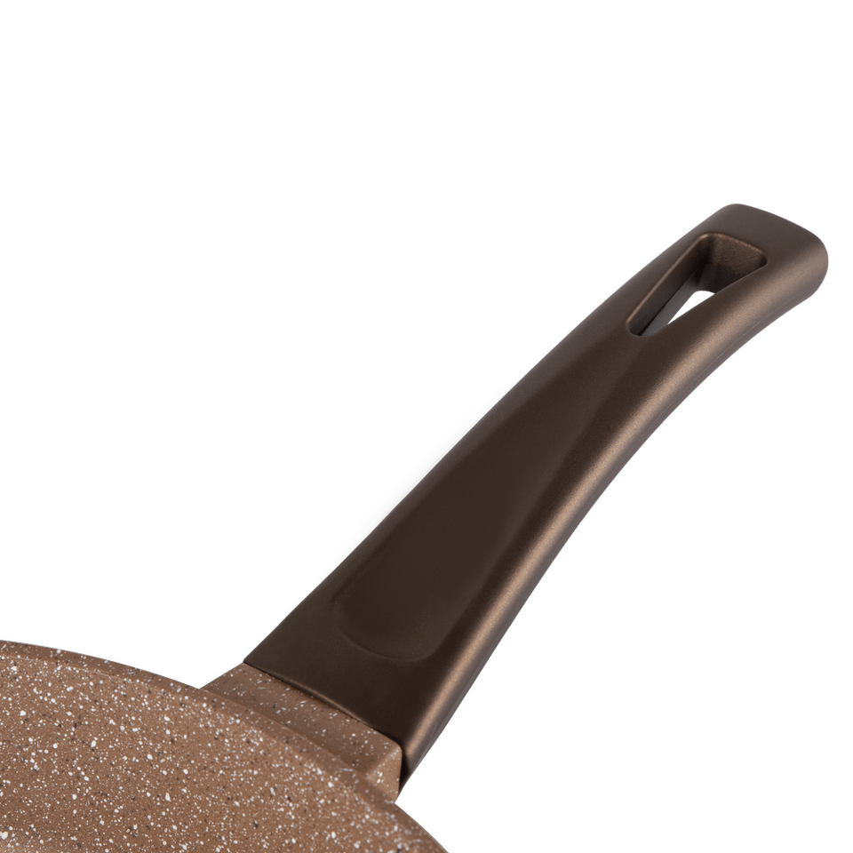 Сковорода с эффектным мраморным покрытием и современной ручкой в универсальном цвете, будет отлично сочетаться с любой кухней.