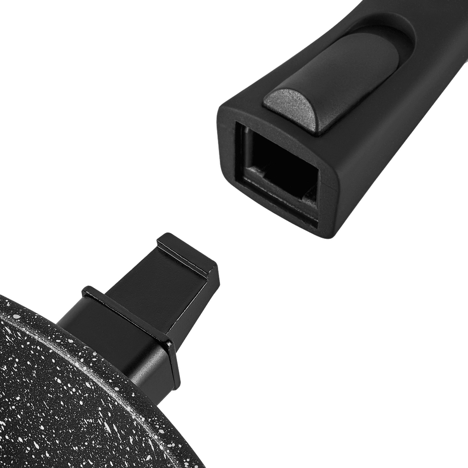 Элегантная сковорода в классическом черном цвете и мраморным антипригарным внутренним покрытием со съемной ручкой. Сковорода подойдет под любой интерьер кухни и не займет много места на полке. Можно использовать в духовке, предварительно сняв ручку. Современные и стильные формы- мы учли все мировые тенденции, чтобы посуда была 100% экологичной и стильной
