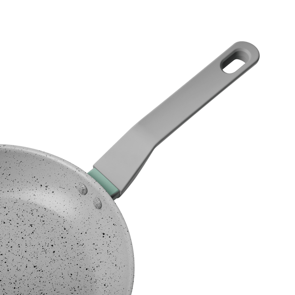 Мраморное антипригарное покрытие абсолютно инертно — это гарантирует, что в пищу не попадет никаких вредных примесей и веществ даже при воздействии очень высоких температур. Поверхность посуды не подвержена загрязнениям и не впитывает запахи.