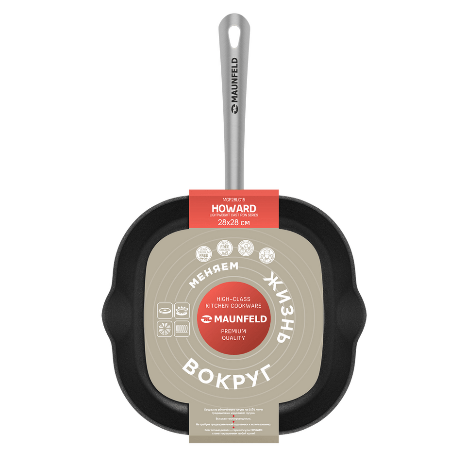 Компания MAUNFELD представляет посуду из облегченного чугуна серии HOWARD с антипригарным покрытием XylanPlus.