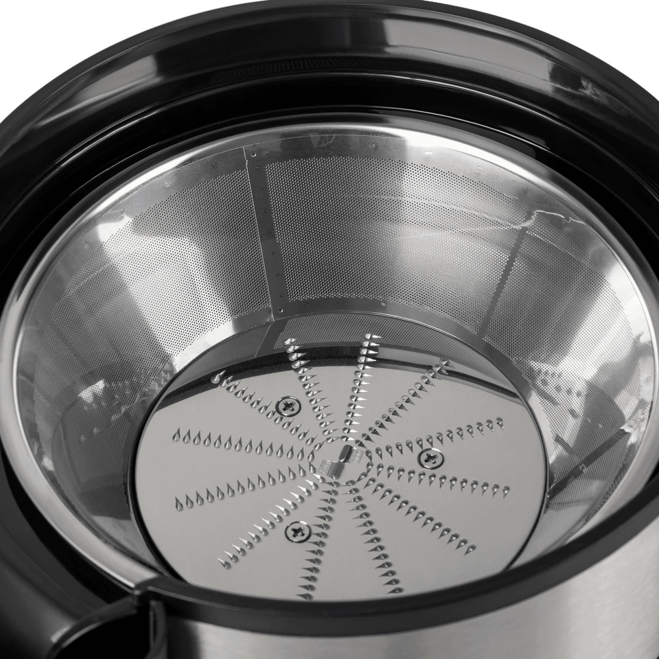 Фильтр-терка из нержавеющей стали является гарантом получения качественного сока и малого количества жмыха.