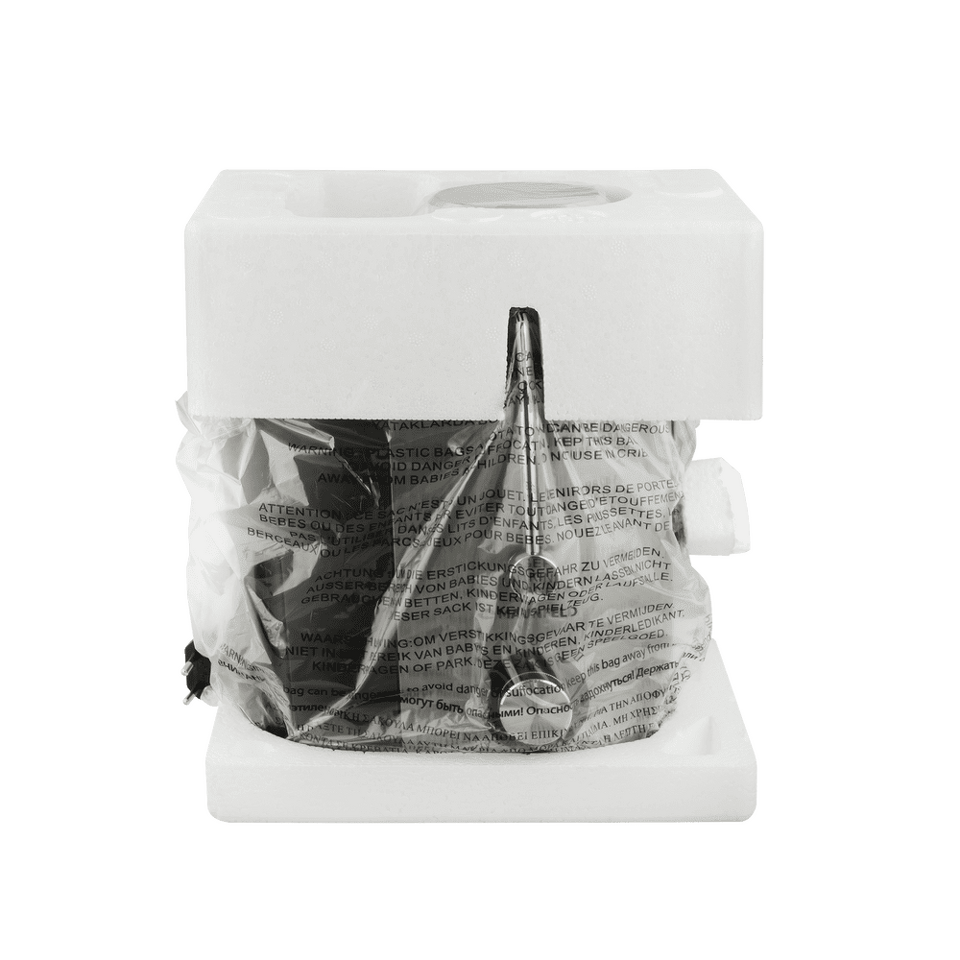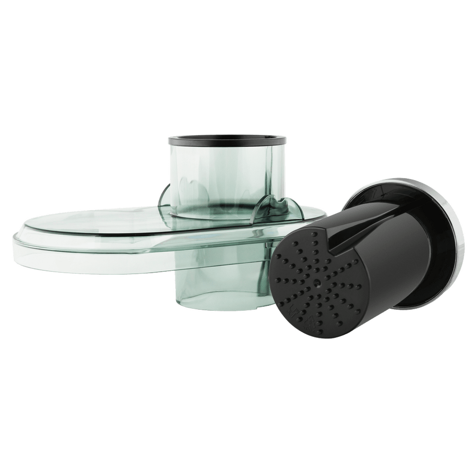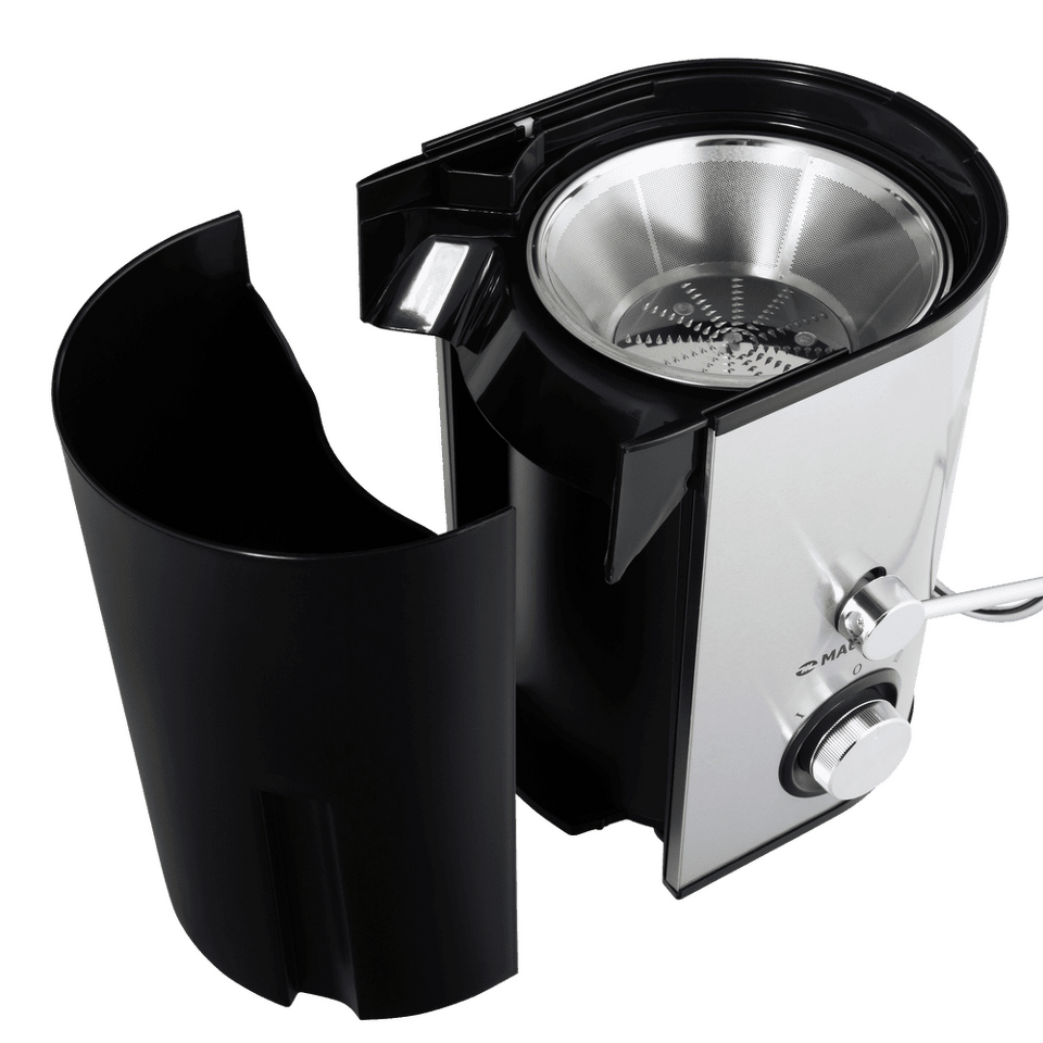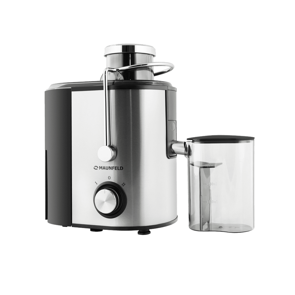 Черный контейнер для мякоти объемом 1,2 л сделан из высокотехнологичной пластмассы легко отсоединяется после использования и моется. Толкатель также сделан из черной пластмассы, чтобы со временем не терять свой внешний вид под воздействием соков.