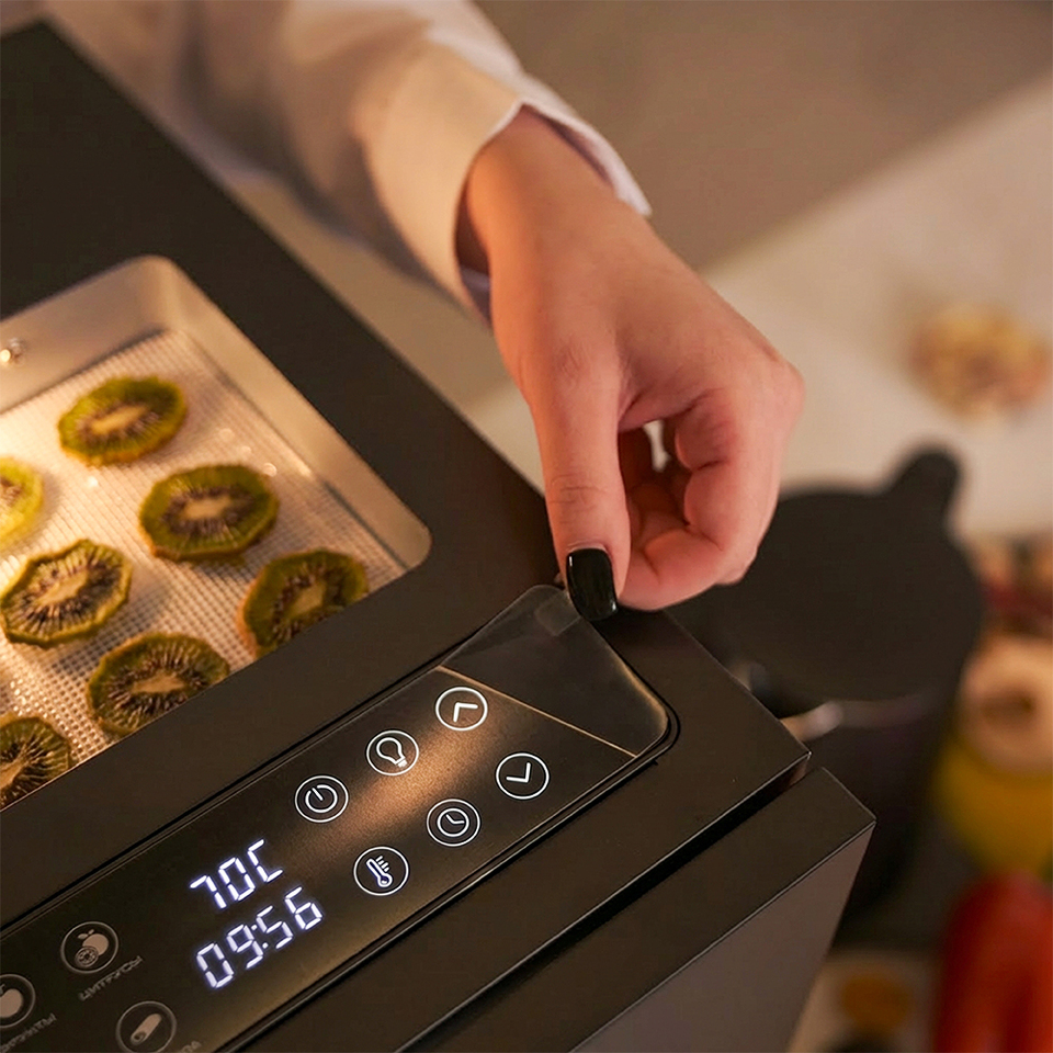 Meyvel MDH14-2S (Black) оснащён сенсорной панелью с понятным интерфейсом. Настройки можно задать вручную — температура регулируется в диапазоне от 35 до 75°C, а время — от 30 минут до 72 часов.