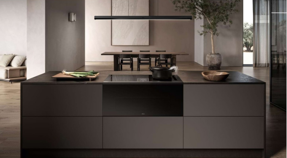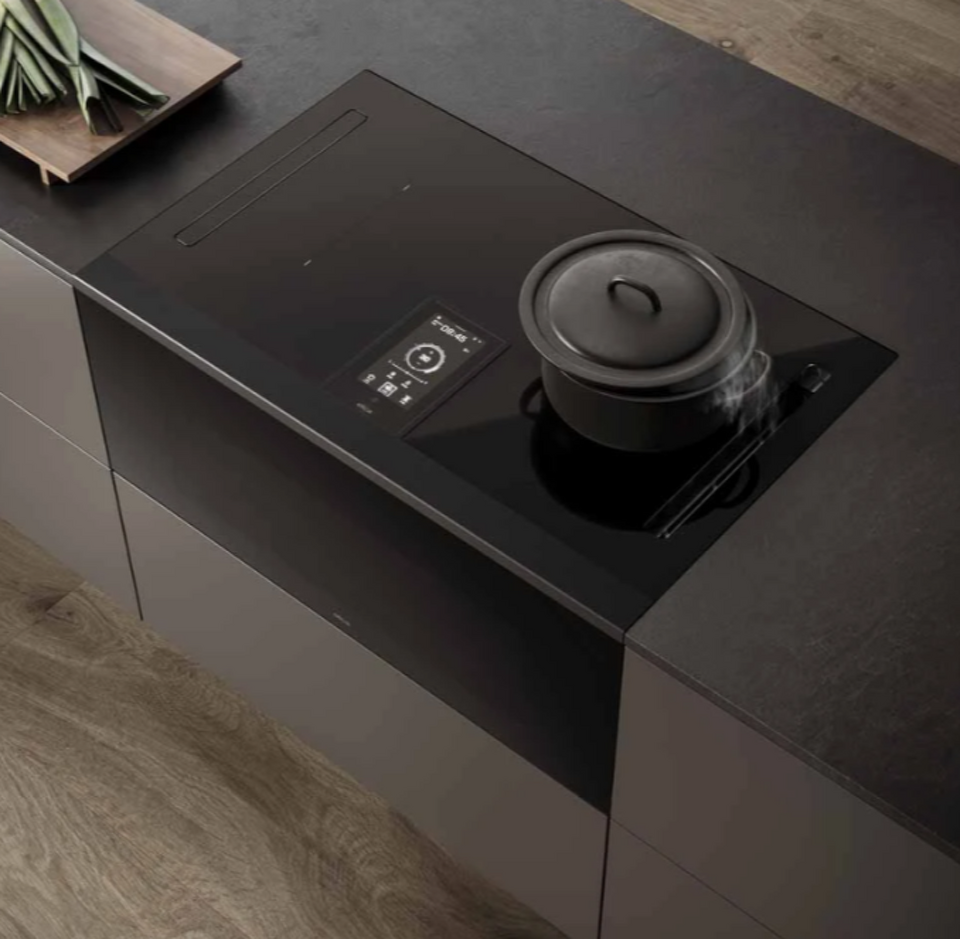 Революционный аспирационный центр Lhov удаляет пары и запахи не только с варочной поверхности, но и из духовки. Система вентиляции автоматическая, а на варочной панели она еще и селективная: при необходимости она активируется только с одной стороны (только там, где вы готовите).