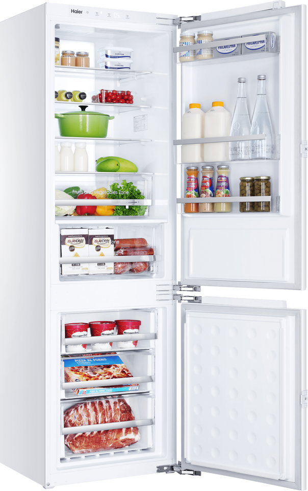 Встраиваемый холодильник HAIER BCFT629TWRU высотой 177 см, с вместительным холодильным (170 л) и морозильным отделением (60 л). В холодильнике можно одновременно хранить много продуктов — отличный вариант для семей с детьми, для тех, кто любит готовить. Ручное размораживание не требуется — технология Total No Frost в обоих отделениях гарантирует авторазмораживание без усилий с вашей стороны. Инверторный компрессор тихо работает и экономит электричество — у холодильника высочайший класс энергопотребления А+. Ещё у него увеличенный рабочий ресурс в сравнении с обычным компрессором, и температура в холодильнике благодаря ему поддерживается более точно. Для максимально качественного и длительного хранения свежих продуктов в холодильнике есть выдвижной контейнер 0º Zone, в котором поддерживается температура около 0 градусов и можно настраивать уровень влажности в зависимости от конкретных задач хранения. Дополнительное удобство: светодиодная панель освещения в задней стенке холодильного отделения — все продукты отлично видно. Сенсорное управление с дисплеем призвано максимально облегчить управление холодильником. HAIER BCFT629TWRU — высокотехнологичный, вместительный и экономичный встраиваемый холодильник: качественно сохранит продукты и расширит возможности для экспериментов с дизайном кухни.