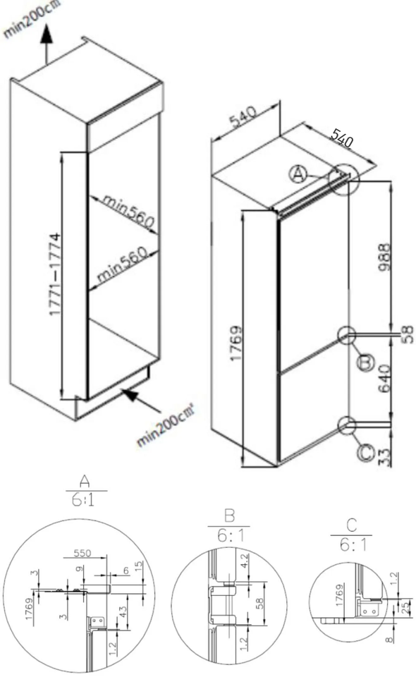 Высота ниши для установки, см 176.9