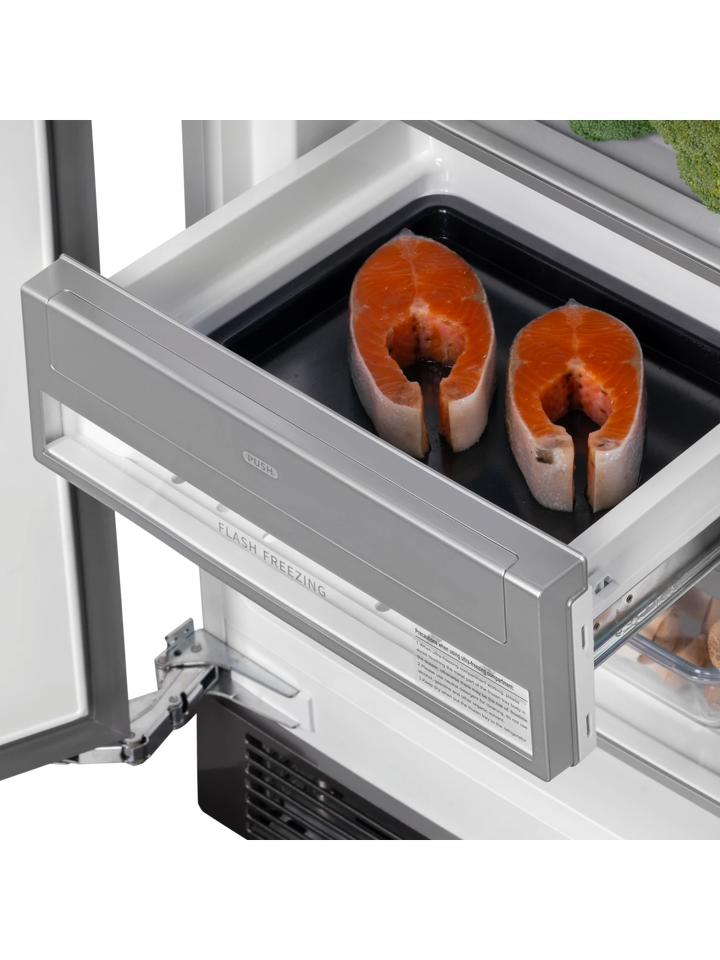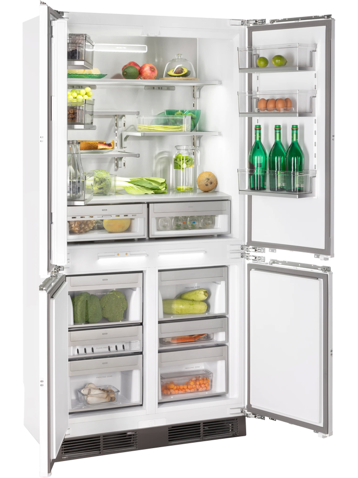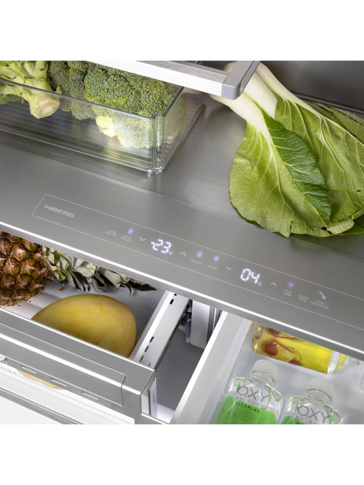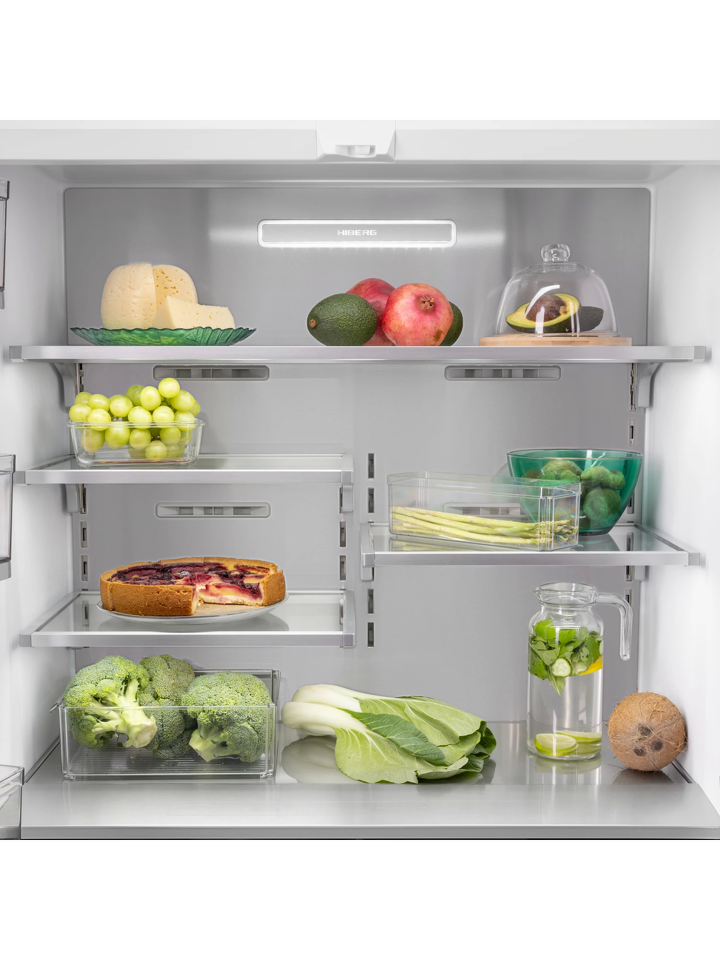 Инновационный встраиваемый холодильник HIBERG S-RFQ 800 W с инверторным компрессором, системой охлаждения Total No Frost и электронным управлением — идеальный вариант для просторной кухни, который станет стильным дополнением интерьера. Техника высотой 199,6 см, шириной 96,2 см и глубиной 57,2 см отлично подходит для встраивания, создавая цельное кухонное пространство. По своему функционалу и используемым технологиям прибор не имеет аналогов на российском рынке, а роскошный дизайн техники доставит пользователю настоящее эстетическое удовольствие.