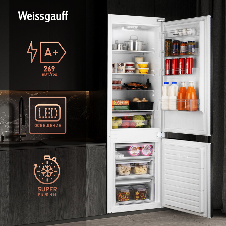 Современный встраиваемый холодильник от Weissgauff с объемом 256 литров, капельной системой размораживания, оснащенный надежным механическим управлением и LED-освещением - это технологичная и функциональная модель, выполненная со всей тщательностью немецкого подхода к созданию качественной бытовой техники.