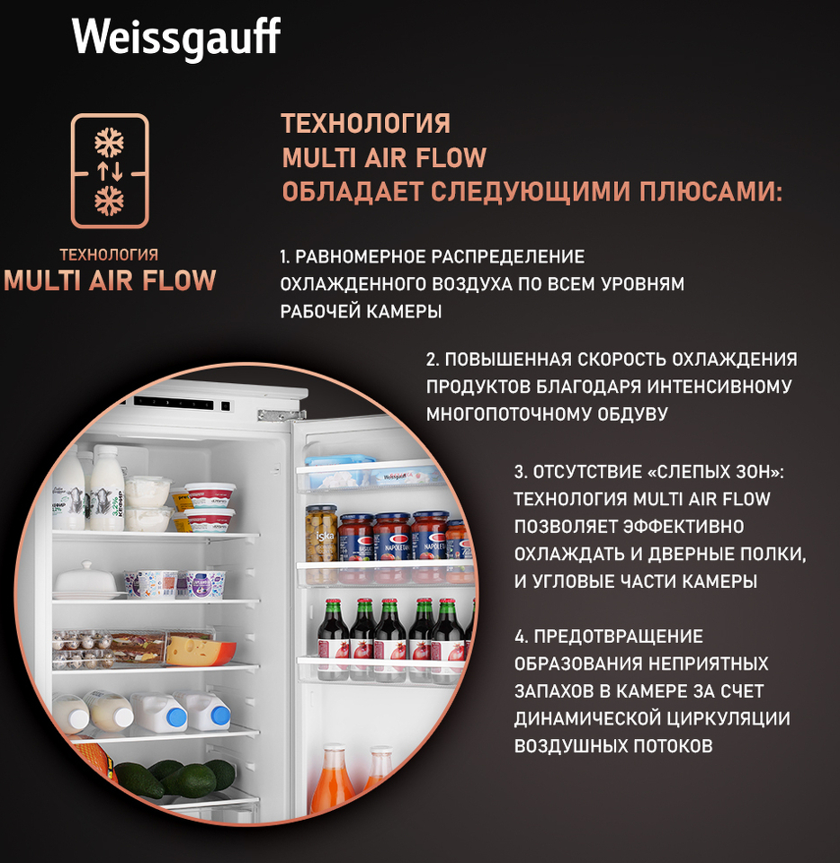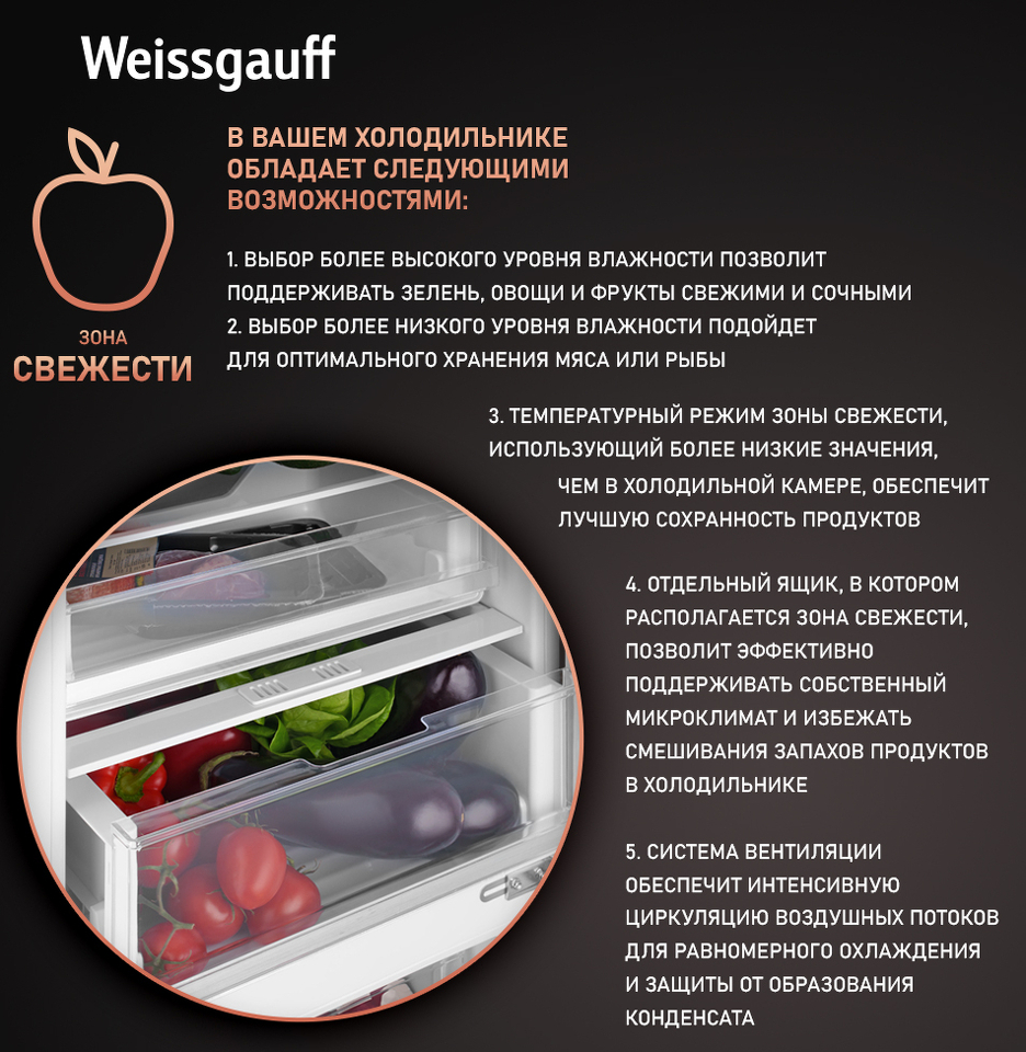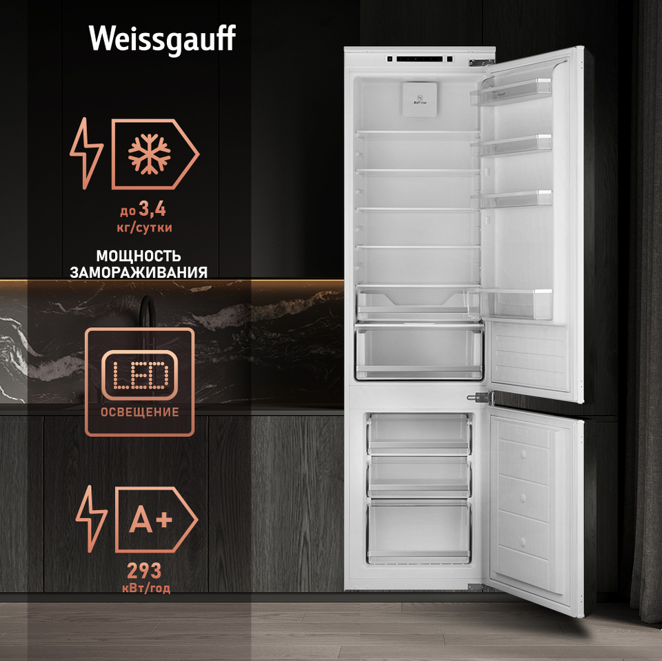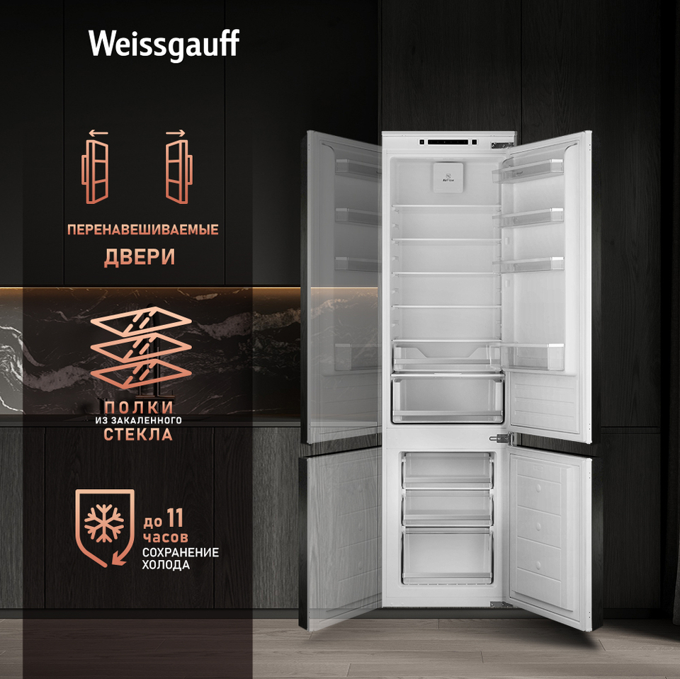 Современный встраиваемый холодильник от Weissgauff с общим объемом 308 литров, системой размораживания LowFrost, электронным управлением и оснащенный LED-освещением - это технологичная и функциональная модель, выполненная со всей тщательностью подхода к созданию качественной бытовой техники.