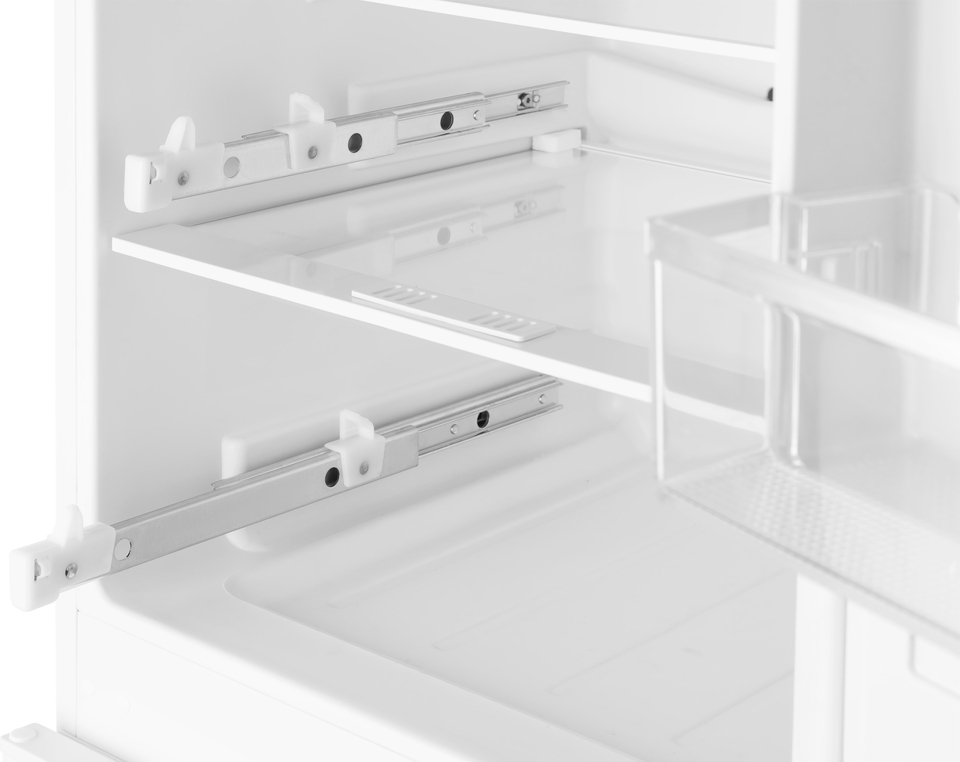 Слайдерное крепление фасада реализовано благодаря удобным направляющим, размещенным на двери холодильника, что позволяет автоматически плавно смещать внешний элемент фасада при каждом открытии дверцы!