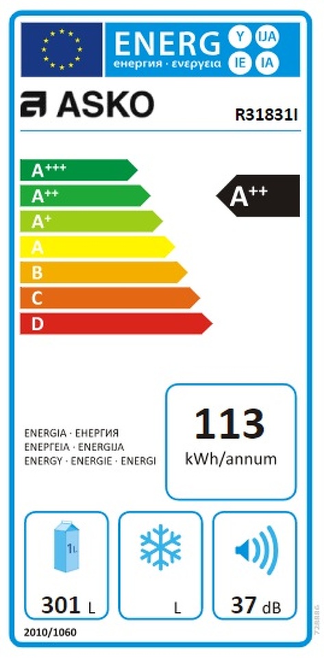Устройство работает за счёт инверторного компрессора, который отличается длительным сроком службы, разумным потреблением электроэнергии, а также низким уровнем шума. Жёсткое крепление типа door-on-door позволяет оформить интерьер в нужном стиле. Если угол менее 15 градусов, то дверцы закроется автоматически.