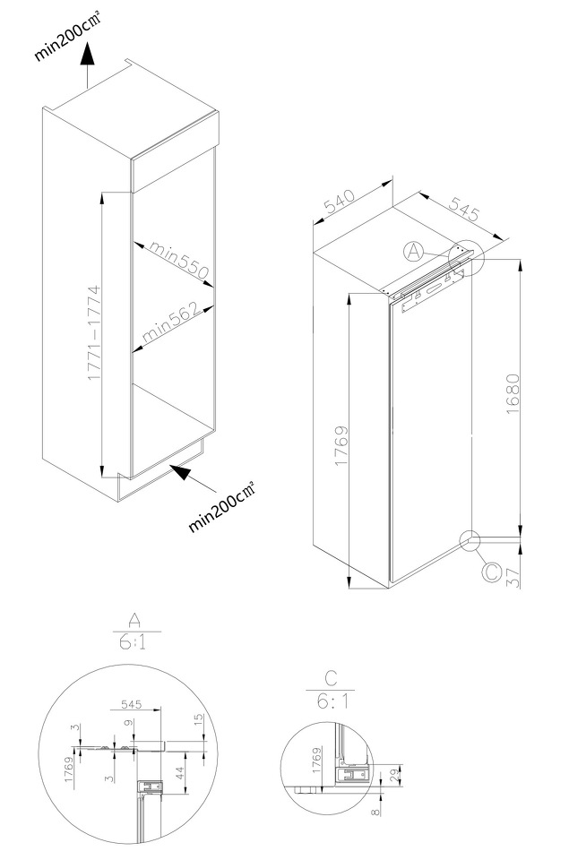 Высота ниши для установки, см 177.6