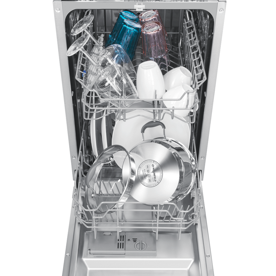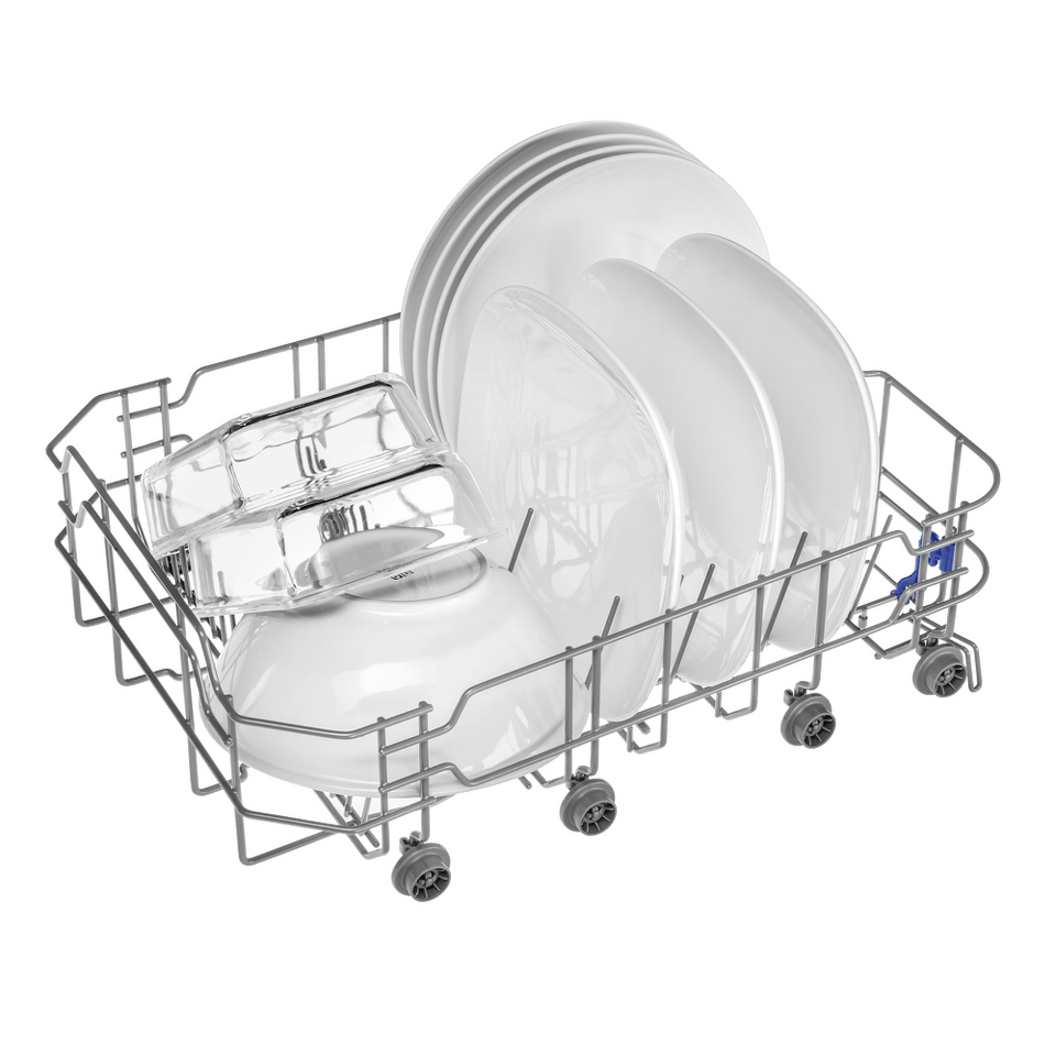 В посудомоечную машину помещается много посуды. Можно накопить её в течение дня или помыть сразу всё после семейного торжества или вечеринки с друзьями. Вместимость — до 9 комплектов посуды.