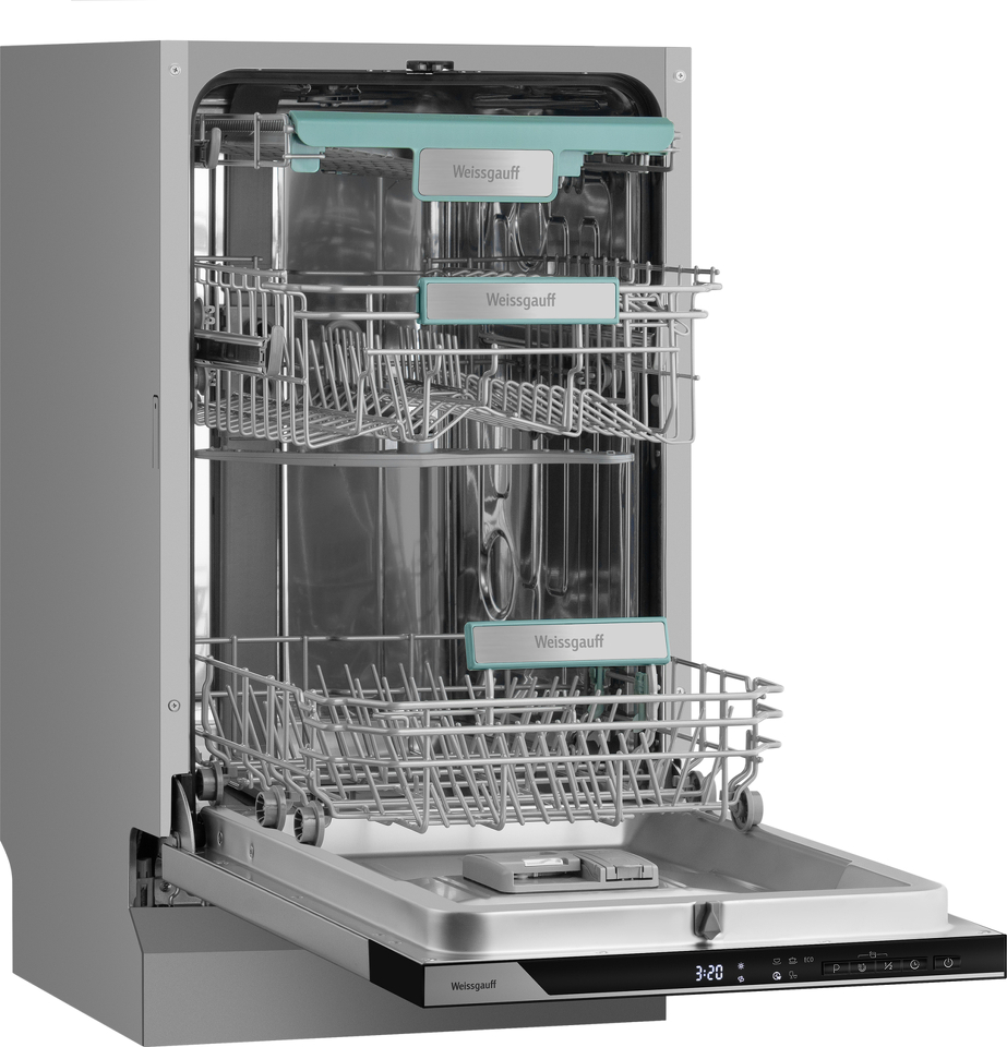 Узкая посудомоечная машина Weissgauff, оснащенная проекцией времени до окончания цикла работы на полу, что делает данную модель не только эффективной, но и по-настоящему удобной в работе не только сэкономит место на вашей кухне, но и обеспечит идеальный результат: 3 корзины позволят расположить посуду оптимальным образом для достижения наилучшего качества мытья, а наличие 5 программ позволит подобрать оптимальный режим в зависимости от количества посуды и степени загрязнения.