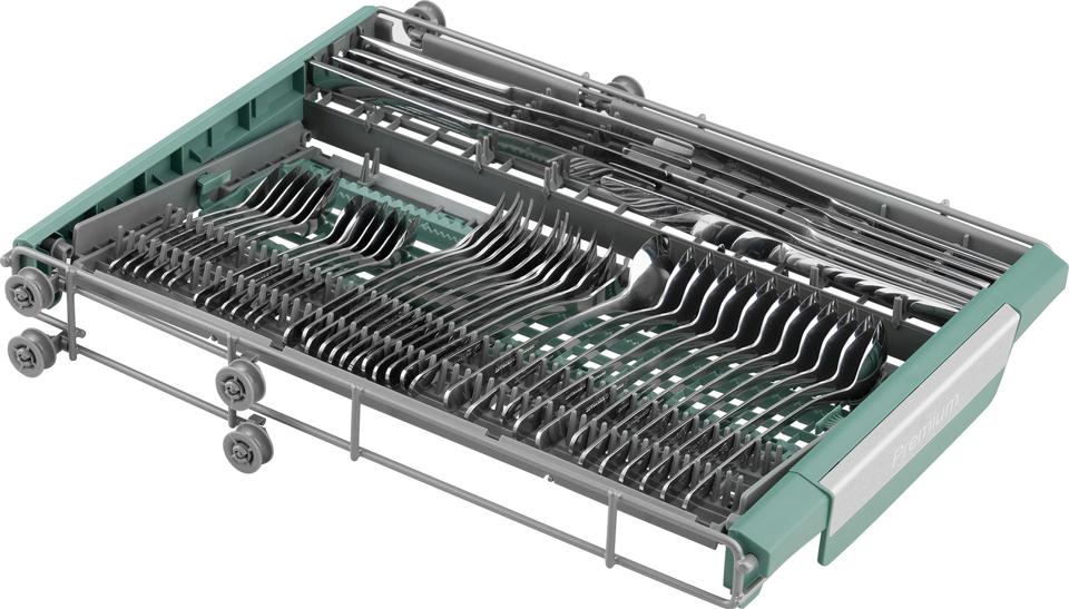 Три корзины, позволяющие разместить отдельно от остальной посуды в верхнем лотке сразу все ложки, вилки и ножи, обеспечивая при этом их наилучшее мытье.