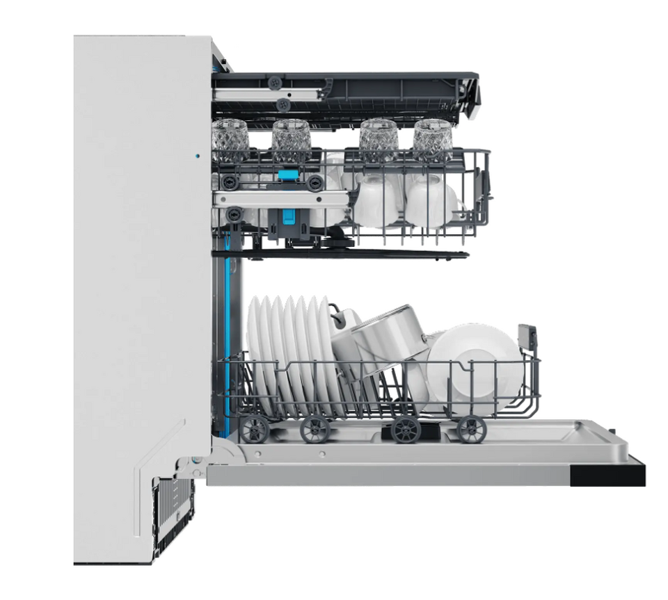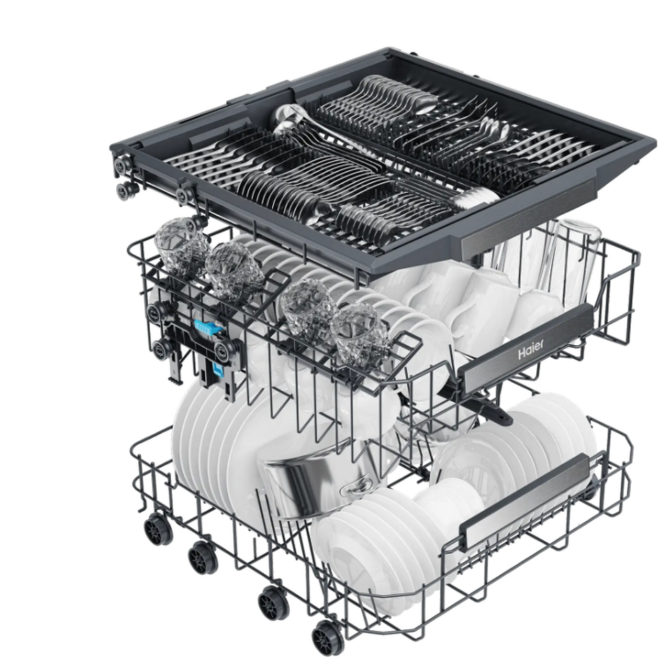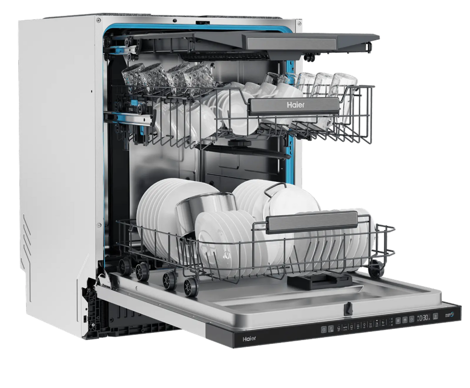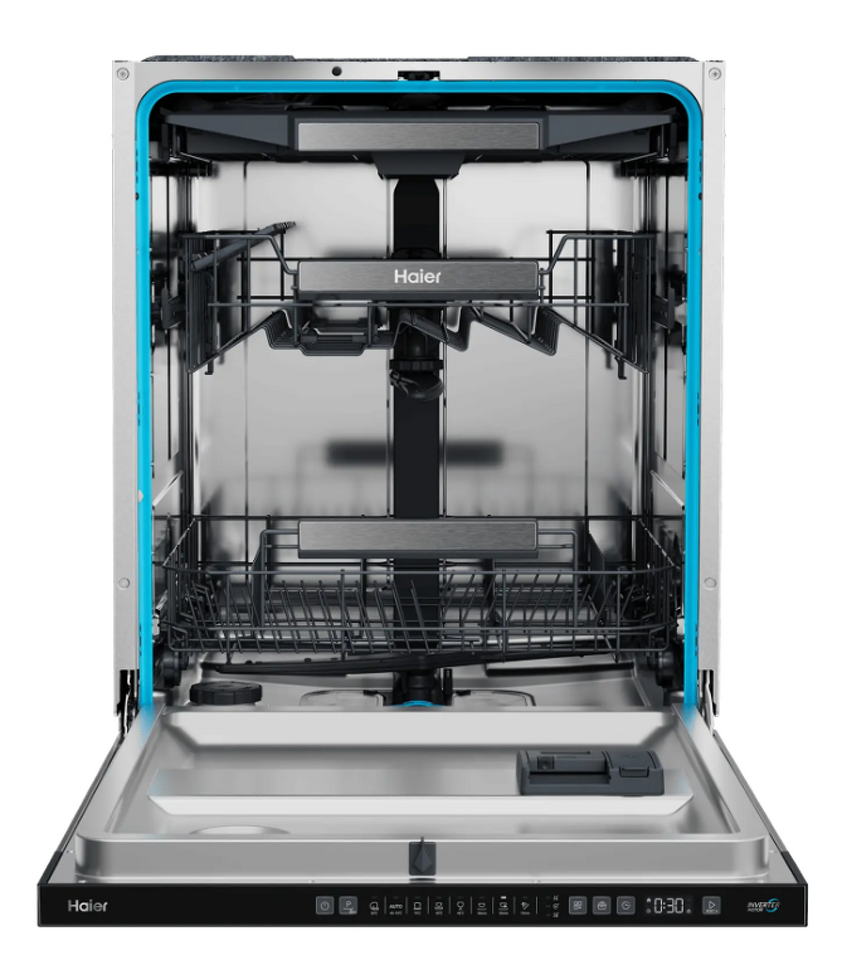 Встраиваемая посудомоечная машина шириной 60 см HDWE16-594RU рассчитана на загрузку до 16 стандартных комплектов посуды, такая большая вместимость поможет помыть за один цикл всю посуду практически в любой жизненной ситуации, причем в нижней и средней корзине есть складные держатели для тарелок. Высокотехнологичный инверторный мотор способствует более тихой и долговечной работе посудомоечной машины. В нижней и средней корзине есть складные держатели, а среднюю корзину можно также отрегулировать по высоте, чтобы максимально удобно загрузить всю посуду. Важная особенность этой модели — автоматическое открывание двери в конце программы мойки. Так посуда высохнет более быстро и качественно без дополнительного расхода электроэнергии.
