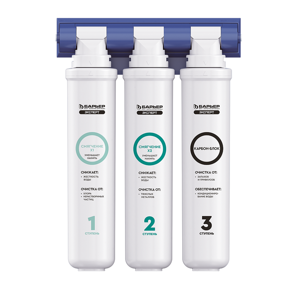 2. "БАРЬЕР ЭКСПЕРТ Смягчение х2" - сочетание сорбционной очистки и второй этап умягчения. Удаляет остаточные тяжелые металлы и накипь.