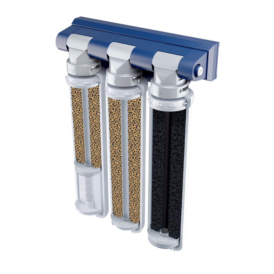 Компактный фильтр с системой мгновенной замены картриджей с двойным ресурсом защиты от накипи без крана в комплекте. Оптимальное решение для тех, кто создает индивидуальный дизайн кухни и выбирает смеситель самостоятельно. Благодаря оптимально подобранному сочетанию компонентов обеспечивает не только базовую очистку, но и эффективно удаляет накипь. Ресурс до 12 месяцев. Конструкция фильтра позволяет менять картриджи без инструментов и специальных ключей, а компактные размеры установить фильтр даже на небольшой кухне.