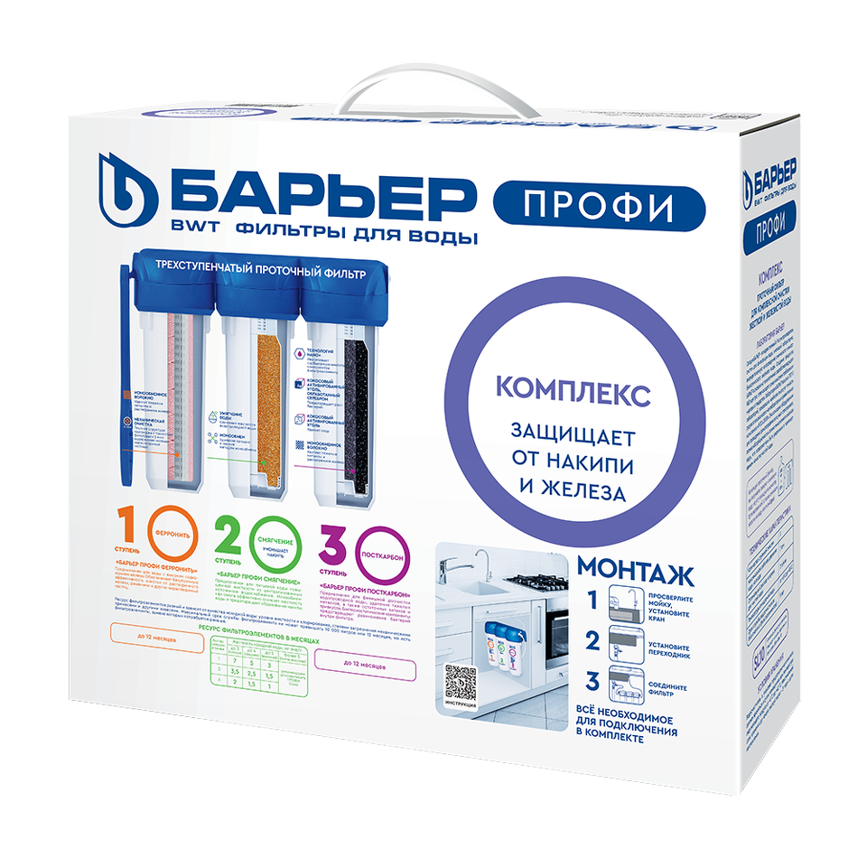 3."БАРЬЕР ПРОФИ удаляет остаточный хлор и его побочные продукты, неприятные запахи и привкусы, кондиционирует воду.