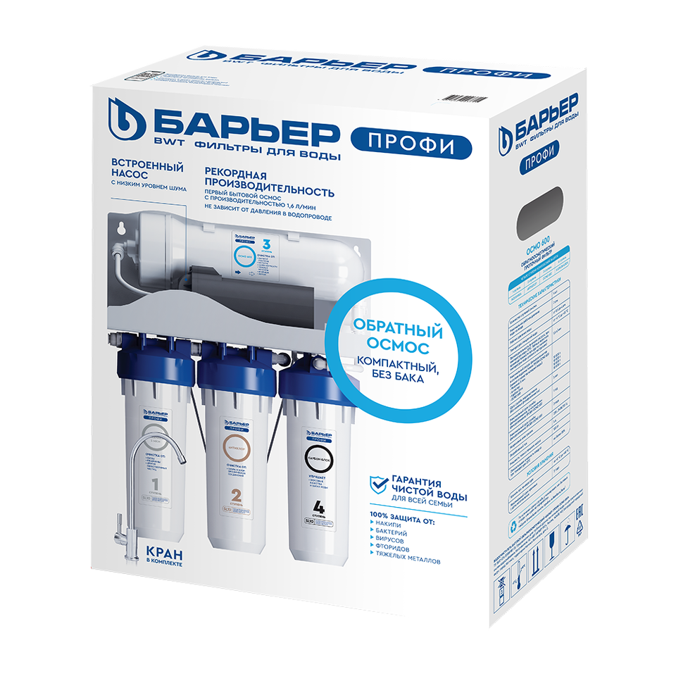Первый компактный бытовой осмос БАРЬЕР с рекордной производительностью - 1,6 л/мин.