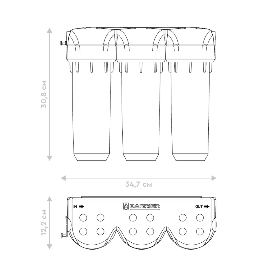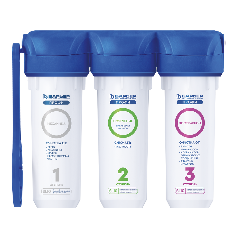 Классическая трехступенчатая система с картриджами стандарта SL 10 для очистки жесткой воды. Позволит забыть о накипи и получить вкусную безопасную воду. Производительность - 2 л/мин.