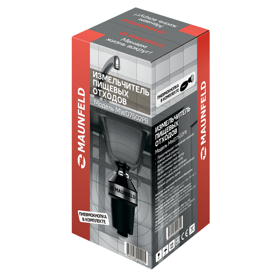 Мощный, бесшумный, надежный измельчитель бытовых отходов MAUNFELD MWD7502PB с пневмокомплектом значительно упростит вашу жизнь