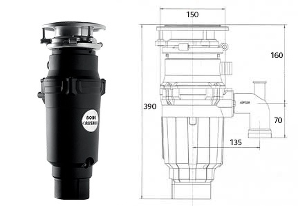 Измельчитель пищевых отходов BoneCrusher 910 AS-Slim Line+установочный комплект