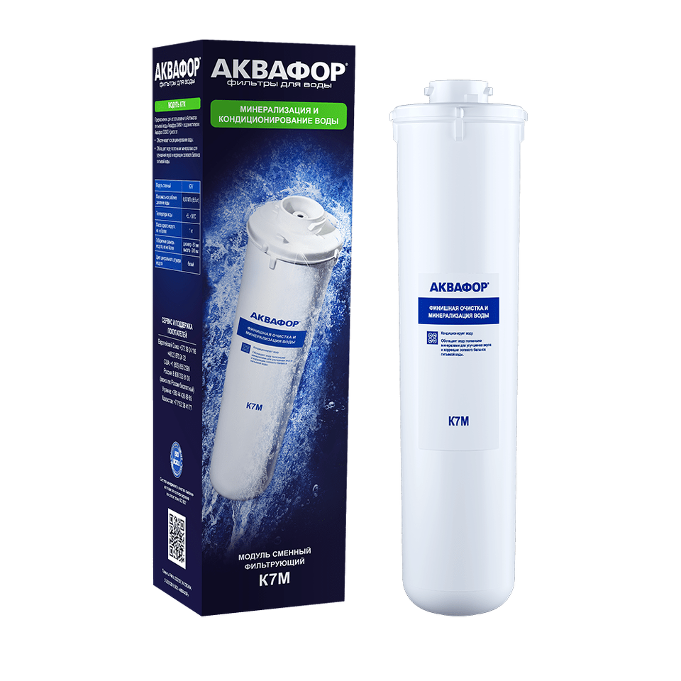 Сменный модуль К7М предназначен для кондиционирования питьевой воды и восстановления оптимального баланса полезных минералов.