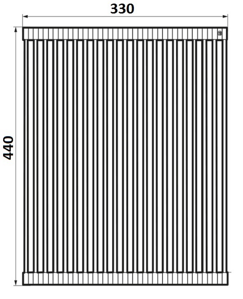 Основные характеристики: Исполнение: квадратный пруток Цвет: сатиновый (брашированный) Материал: нержавеющая сталь и черный силикон Размер: 440мм х 330 мм