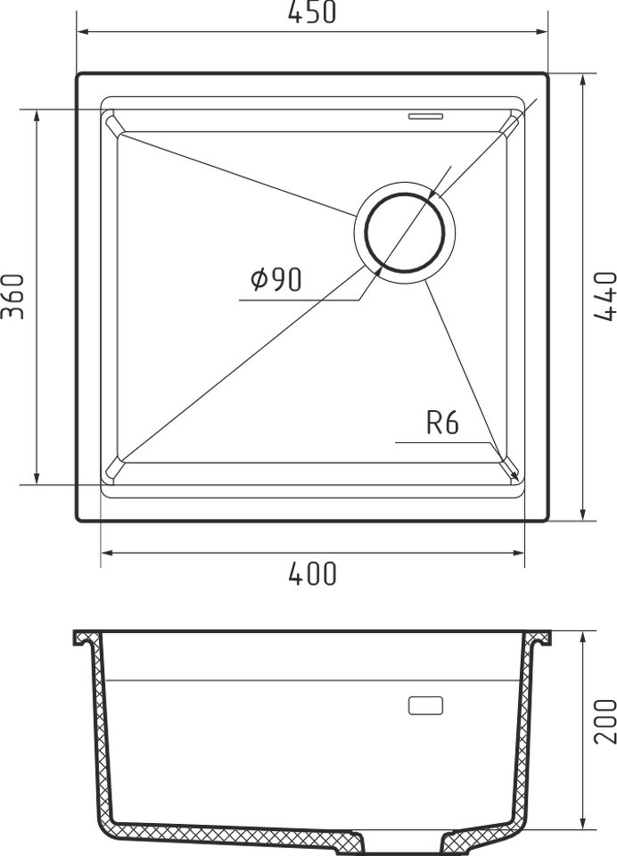 Гранитная мойка Rivelato LINO 454-R 1-чаш 450*440 beige scuro