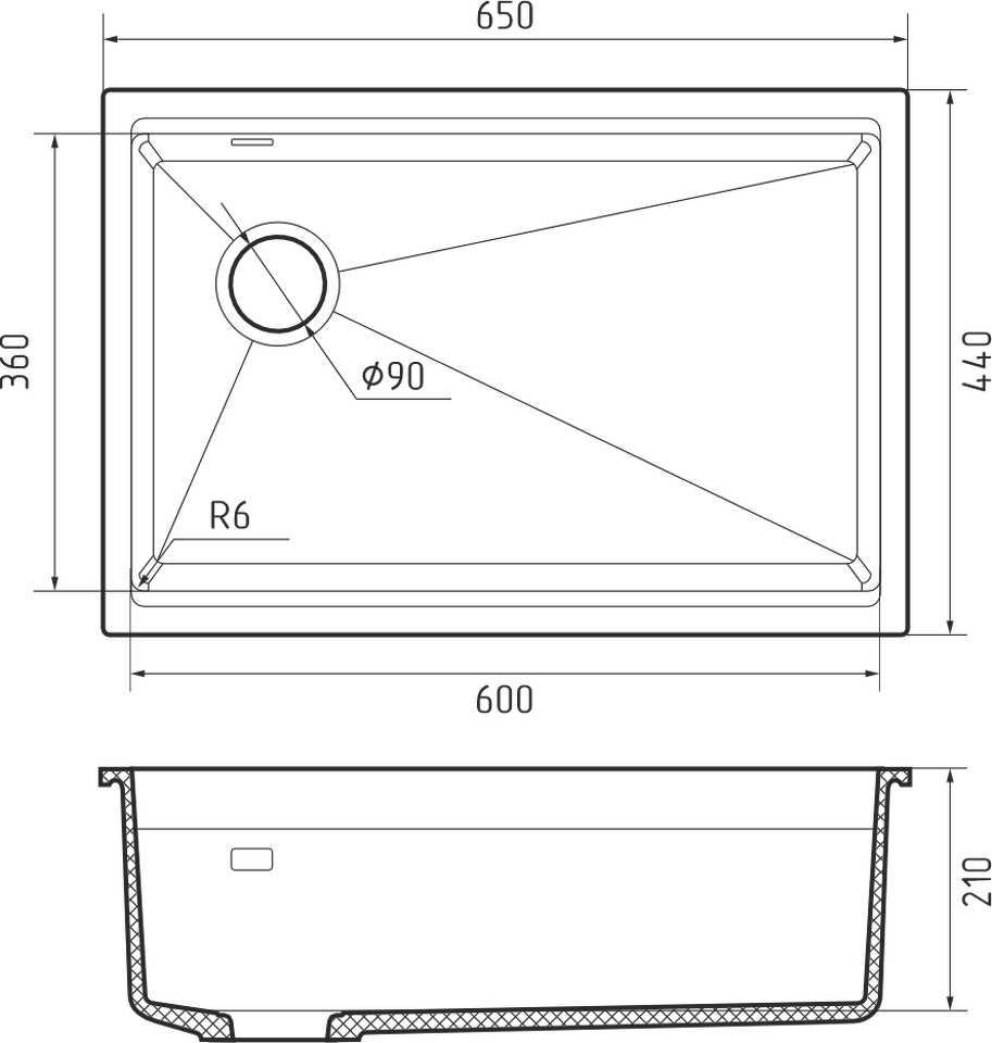 Гранитная мойка Rivelato LINO 654-L 1-чаш 650*440 beige scuro