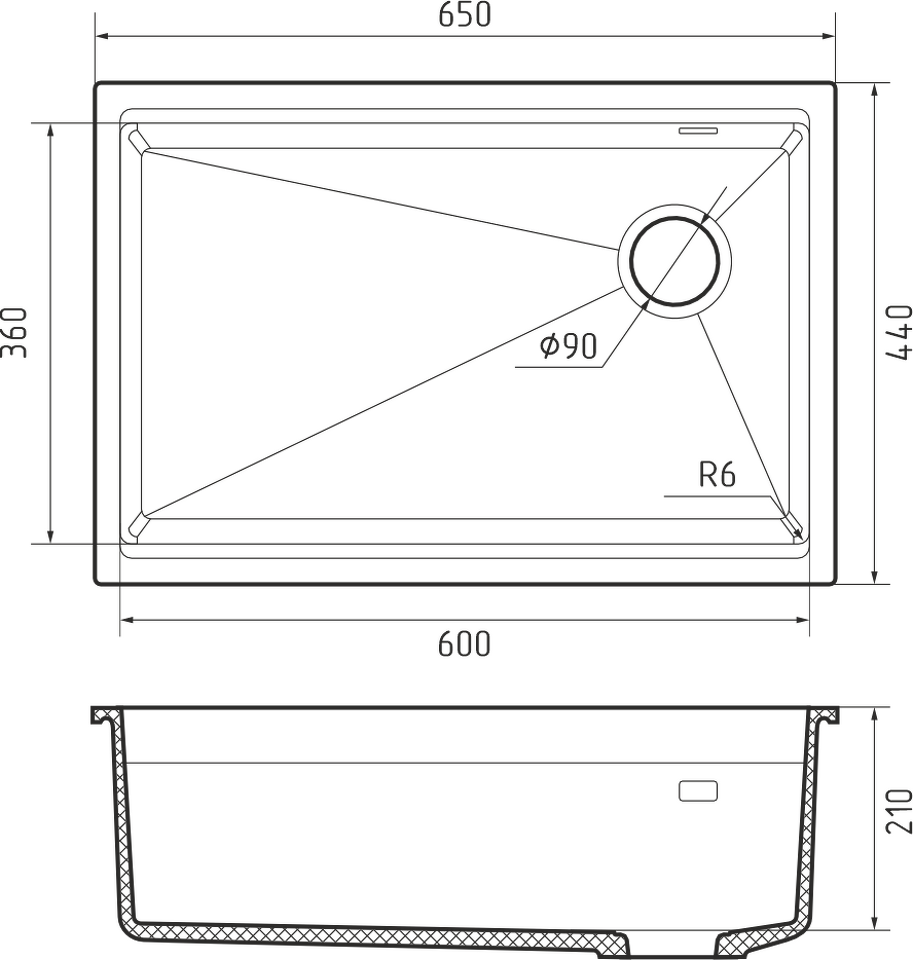 Гранитная мойка Rivelato LINO 654-R 1-чаш 650*440 brina