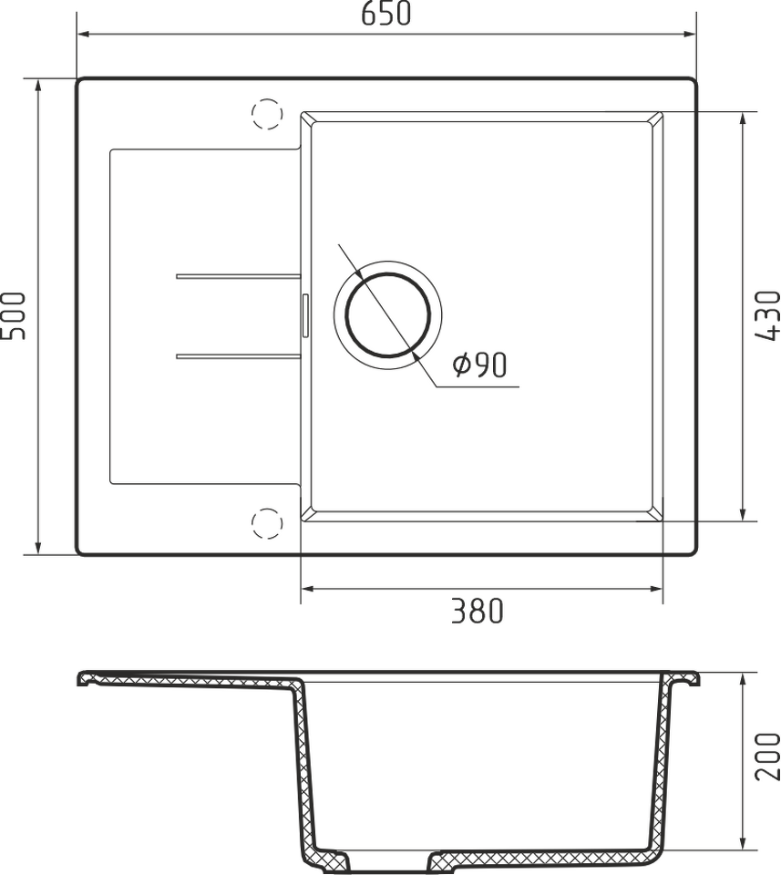 Гранитная мойка Rivelato LUMO 6550 1-чаш 650*500 Nero