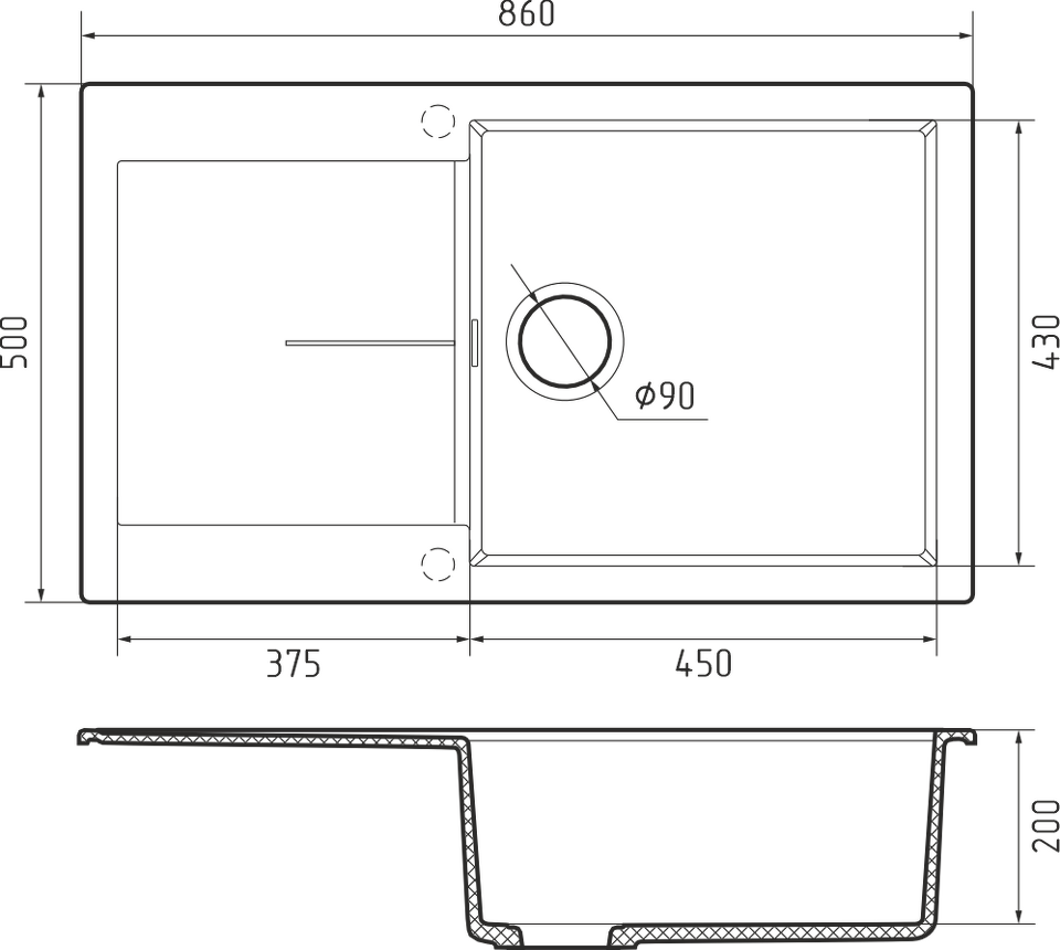 Rivelato LUMO 8650 1-чаш 860*500 Nero