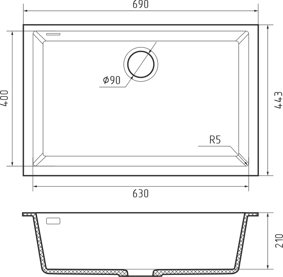 Глубина основной чаши, мм 210