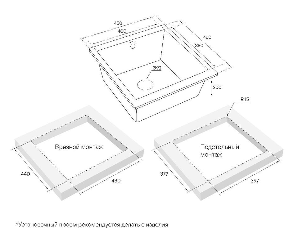 Кварцевая мойка Paulmark GERA 50 PM104546-BLM Черный