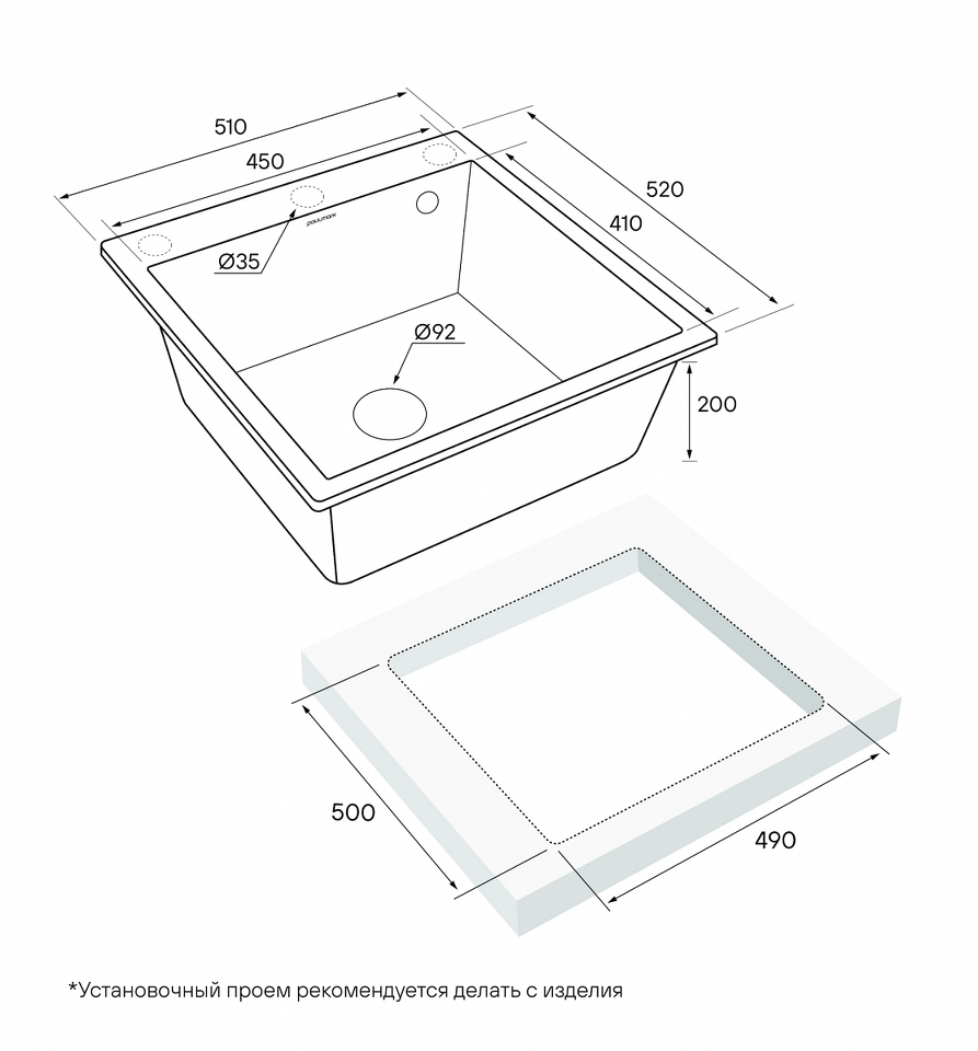 Фото Кварцевая мойка Paulmark KANTE 50 PM105152-GR Серый GR