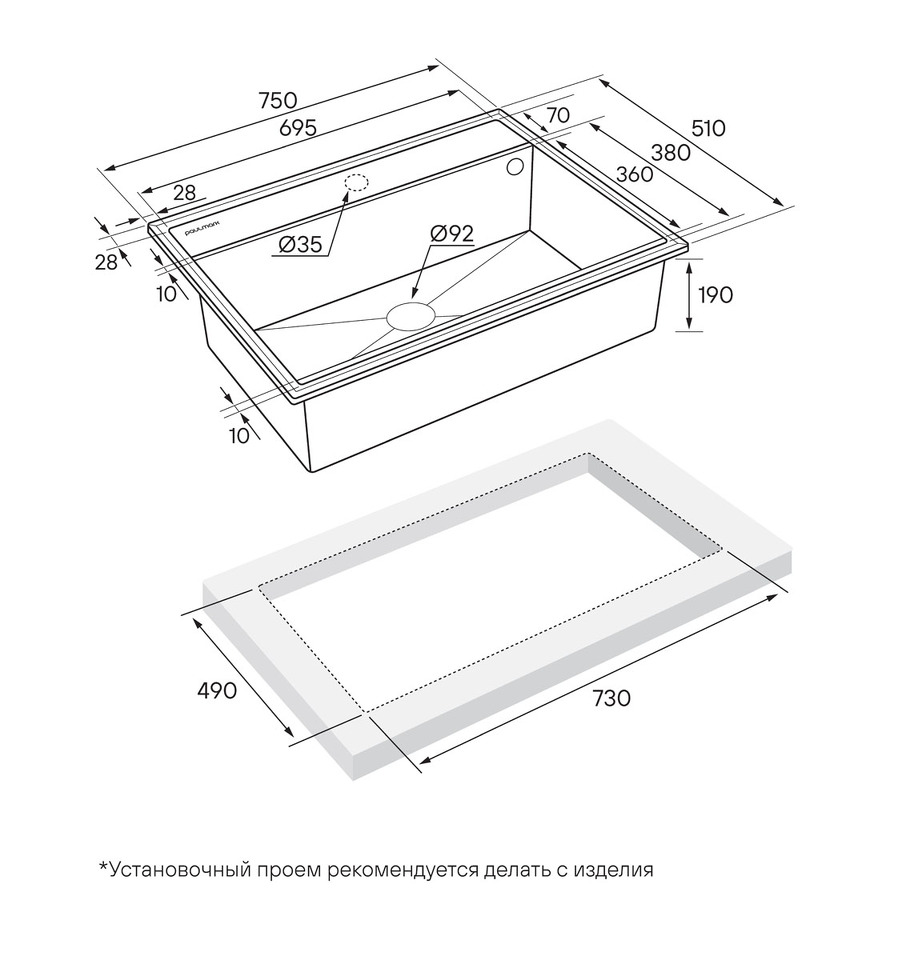 Фото Кварцевая мойка Paulmark STEPIA 80 PM117551-BLM Черный