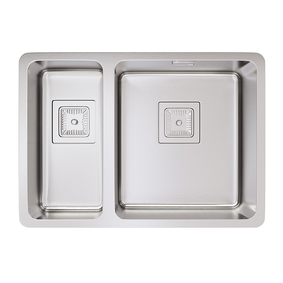 Мойка из нержавеющей стали AISI. AISI 304 содержит 18% хрома и 9% никеля, что обеспечивает максимальную устойчивость к коррозии. Шлифованная поверхность моек OULIN достигается по технологии Satin Finish Brushing. С обратной стороны, на дне чаши, находятся резиновые шумопоглащающие накладки и антиконденсатное покрытие, что делает мойку бесшумной.