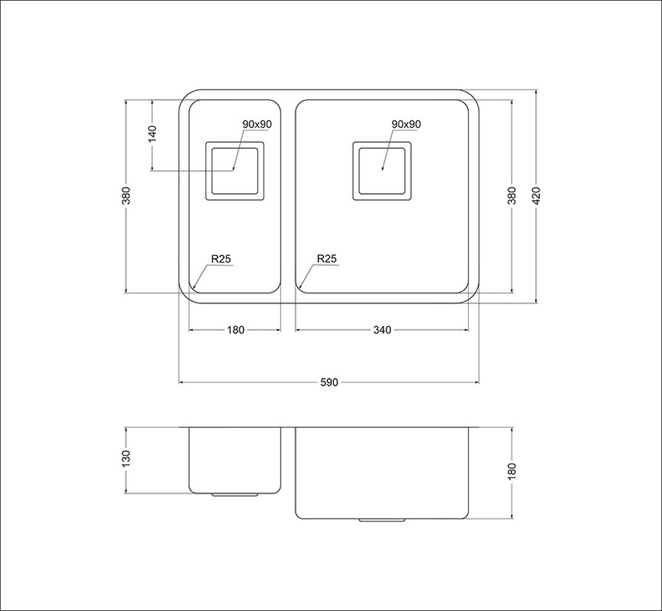 Размеры мойки: 590 x 420 мм