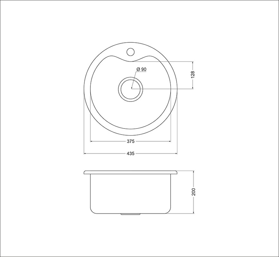 Размеры мойки: d435 мм