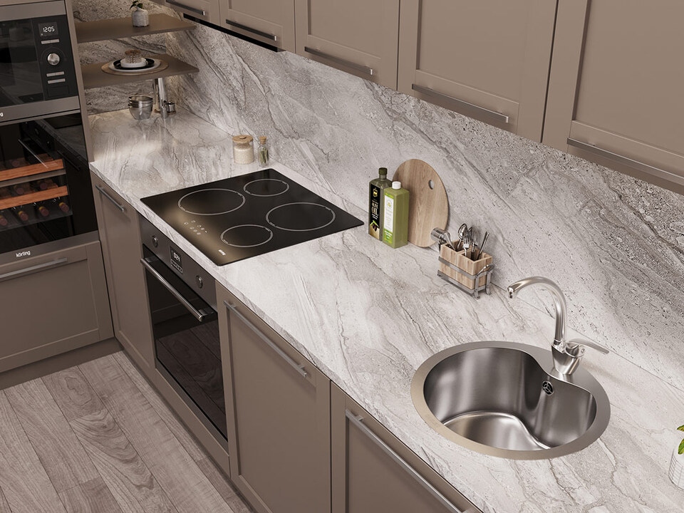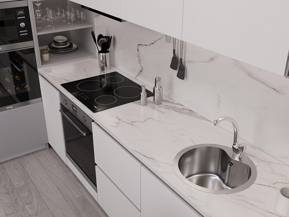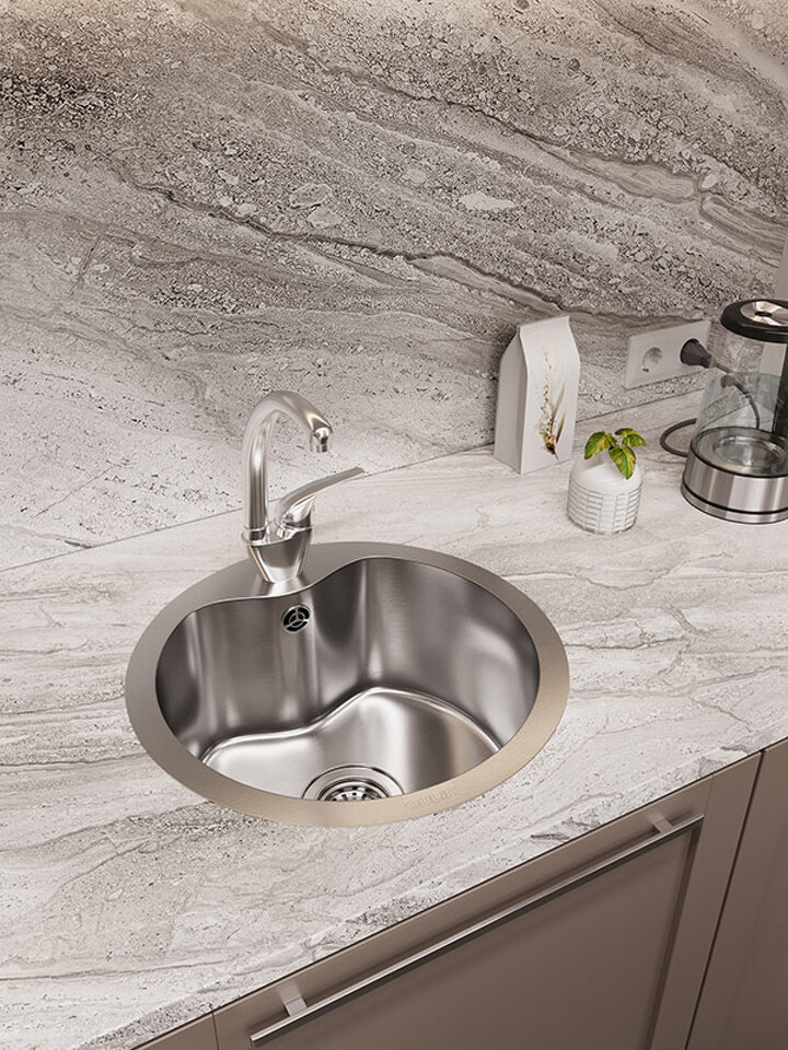 Мойка из нержавеющей стали AISI. AISI 304 содержит 18% хрома и 9% никеля, что обеспечивает максимальную устойчивость к коррозии. Шлифованная поверхность моек OULIN достигается по технологии Satin Finish Brushing. С обратной стороны, на дне чаши, находятся резиновые шумопоглащающие накладки и антиконденсатное покрытие, что делает мойку бесшумной.