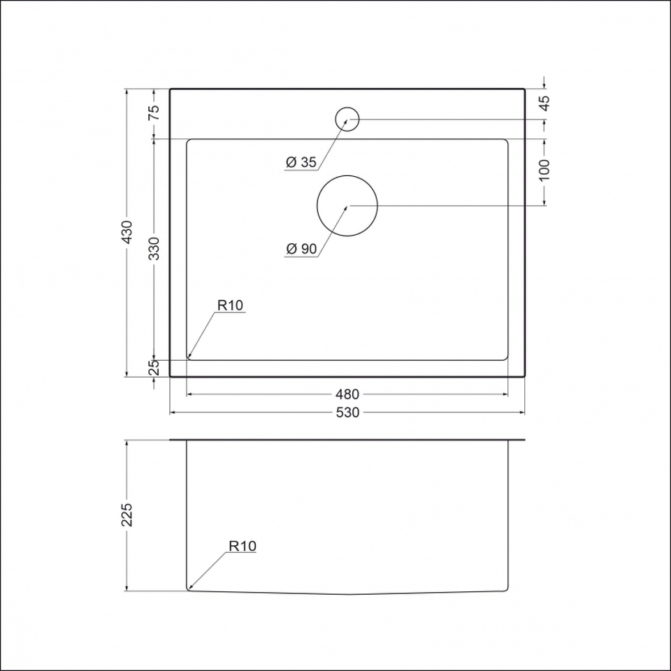 Размеры мойки: 530 x 430 мм