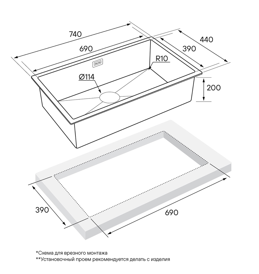 Фото Металлическая мойка Paulmark ALLER 74 UNI PM807444-GM Вороненая сталь GM