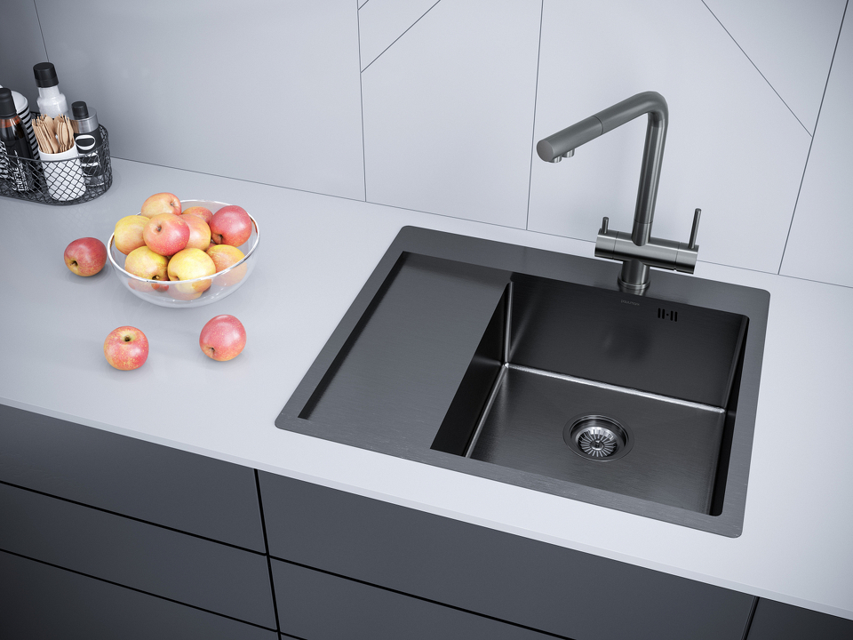 Мойки FLANK в оттенках GM и BG имеют прочное PVD покрытие, которое нанесено на нержавеющую сталь. Оно особенно устойчиво к появлению царапин и истиранию, не содержит микротрещин и является экологически чистым.
