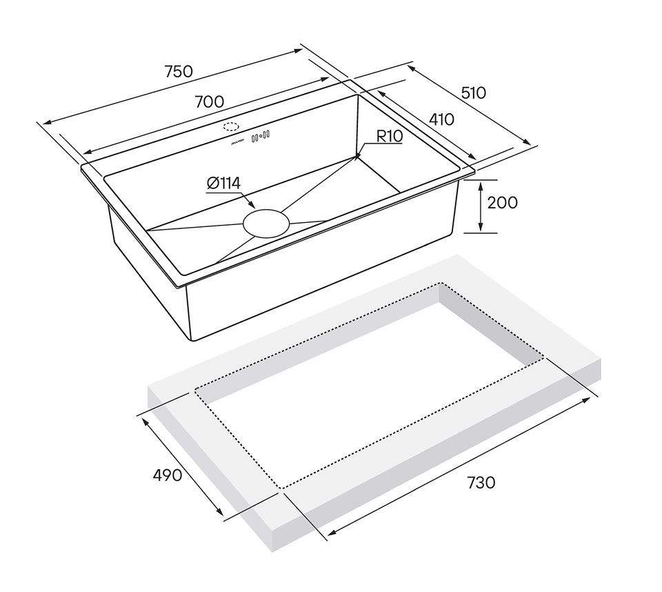 Металлическая мойка Paulmark KRONER 75 PM217551-BS Брашированная сталь