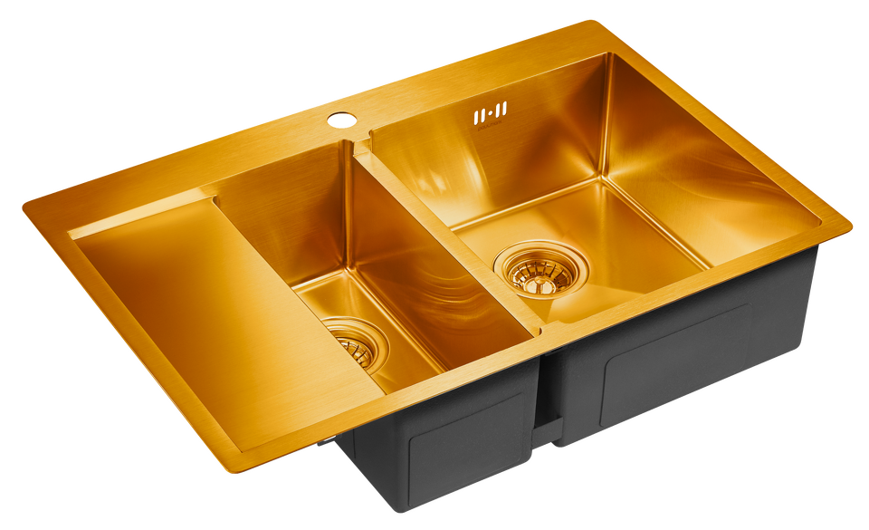 Мойки LIGA L в оттенках GM и BG имеют прочное PVD покрытие, которое нанесено на нержавеющую сталь. Оно особенно устойчиво к появлению царапин и истиранию, не содержит микротрещин и является экологически чистым.